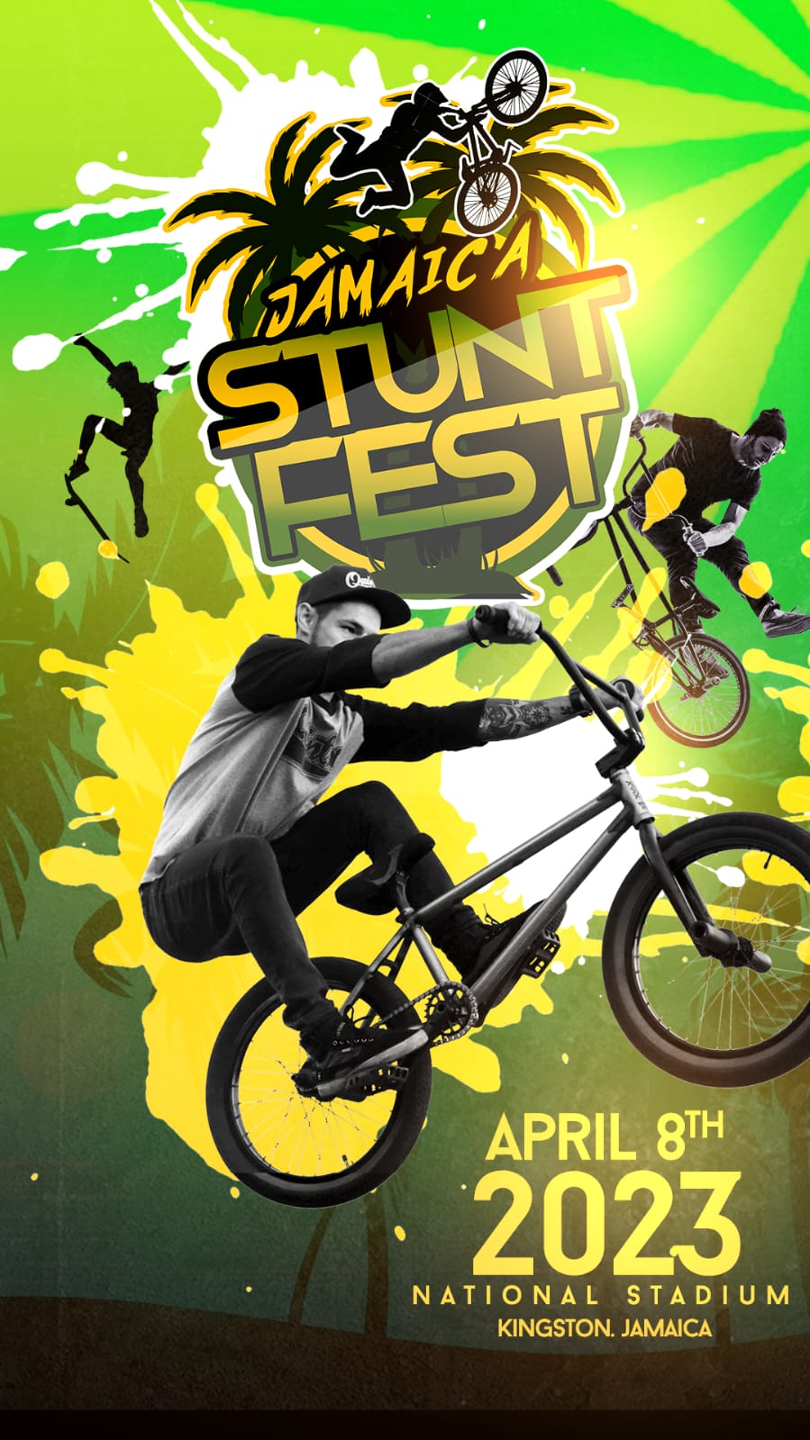 Jamaica Stunt Festival (Jamaica Stunt Fest), is the largest stunt festival in the caribbean a family-oriented event for all Jamaicans, and stunt enthusiasts from all over the world will be here to witness this epic event.  There will be a sizeable roster of championship-level BMX stunt performers and pro-level skateboard stunt performers from around the world as well as an exciting line-up of popular reggae artists, kids rides, mascots, memorabilia, autographs and photo opportunities and many other family-friendly fun activities to round out this event!