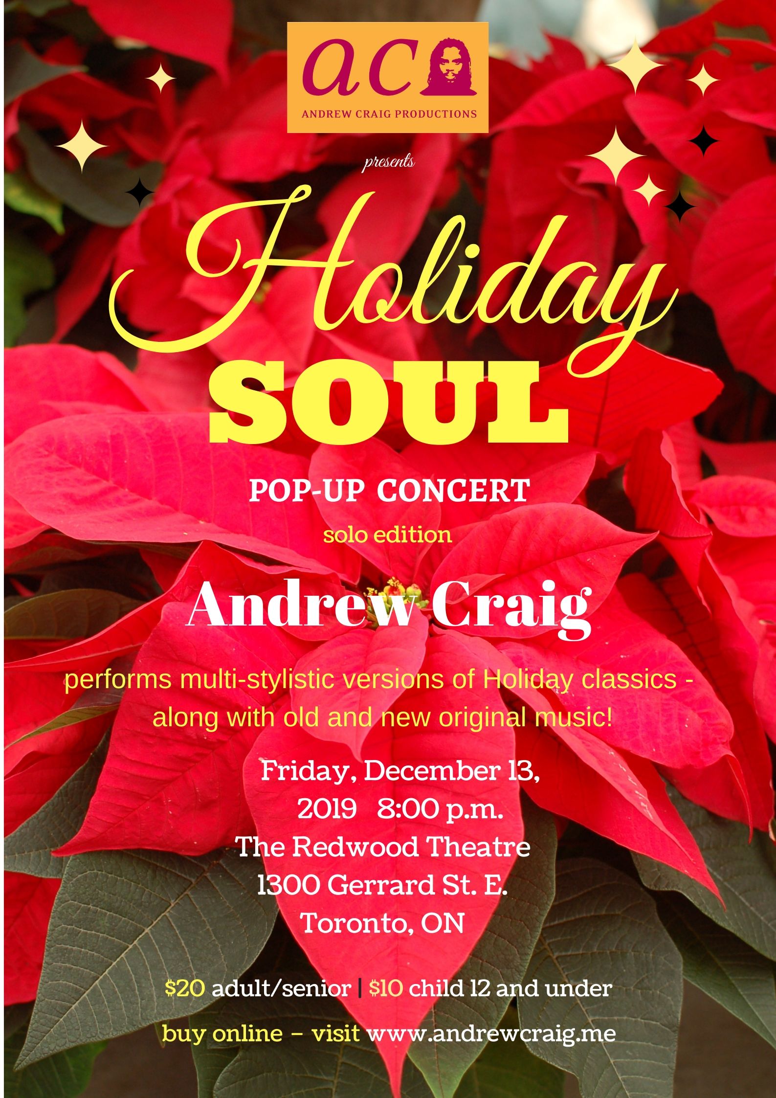 Toronto- and Guelph-based Andrew Craig Productions has produced a tribute to Earth Wind and Fire, the Celebrate Love Valentine's Day concerts, the acclaimed Sistahs Project and Brothas Concerts, the beloved Gospel Christmas Project, and most recently, a tribute to Prince (co-produced with QW Productions).
