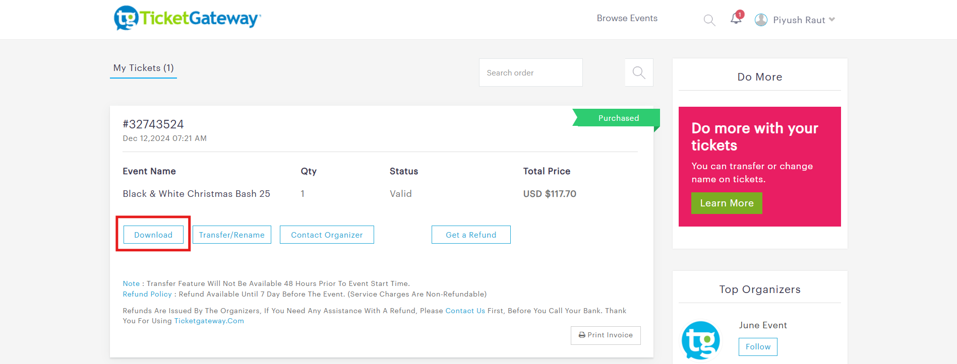 4. Request a refund for My Tickets