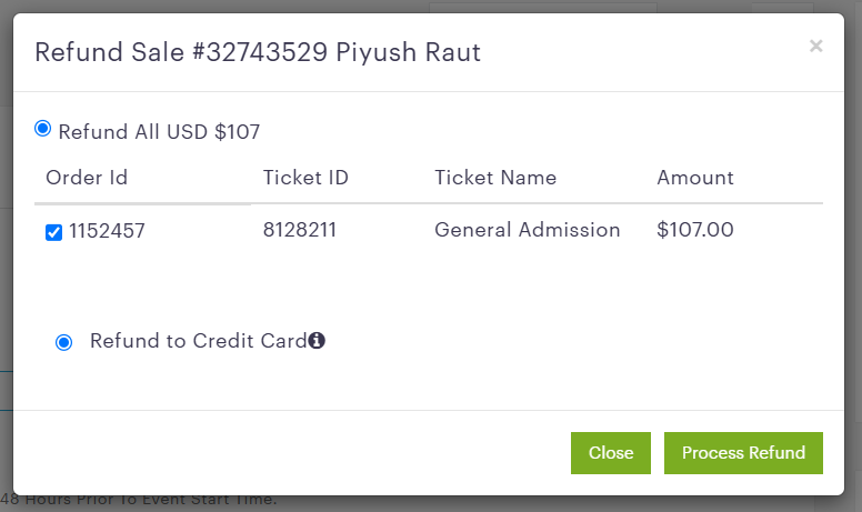 • Click on Process Refund