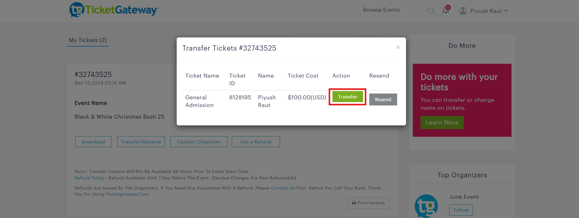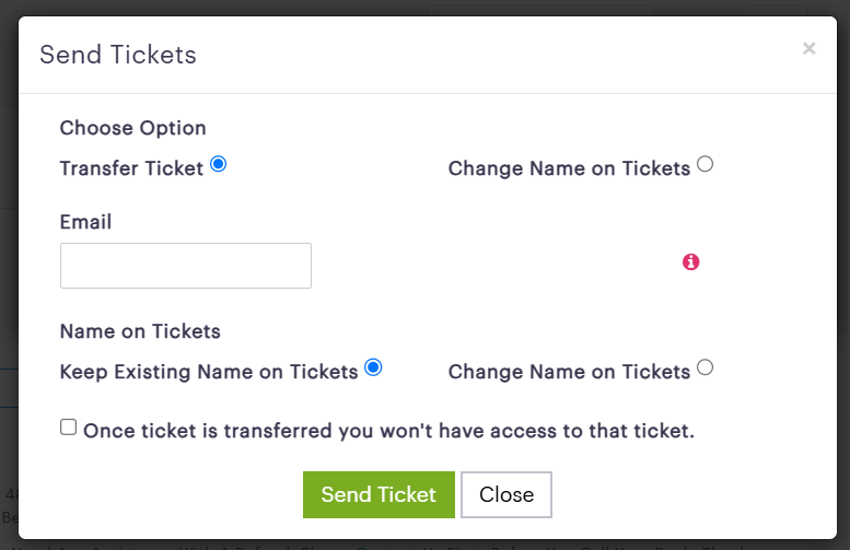• Note : Once ticket is transferred you won't have access to that ticket.