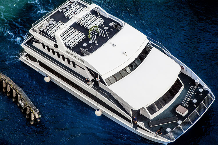 As the vessel glides along Miami's picturesque waters, passengers are treated to sweeping views of the city skyline, pristine beaches, and iconic landmarks like the Art Deco buildings of South Beach and the sparkling waters of Biscayne Bay.