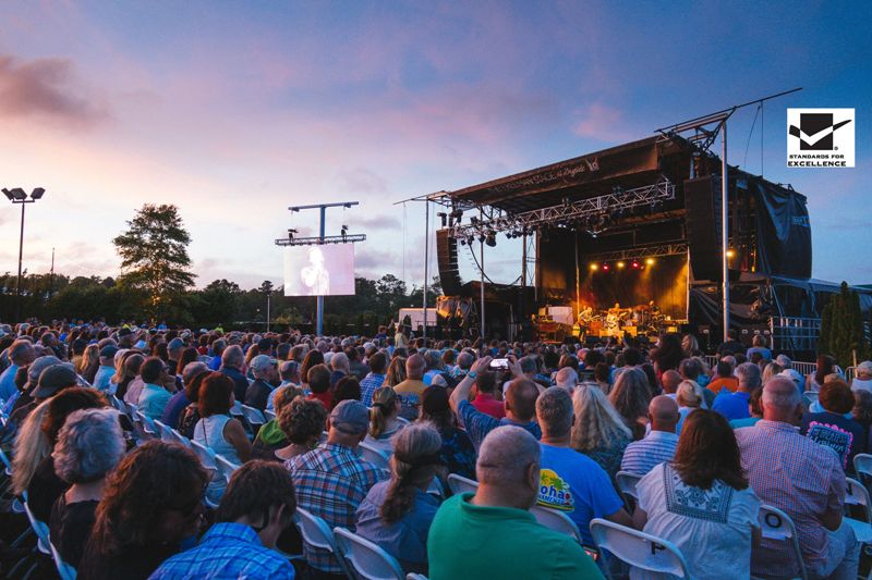 Seasonal, open-air performance space showcasing music, dance, theater & children's programs.